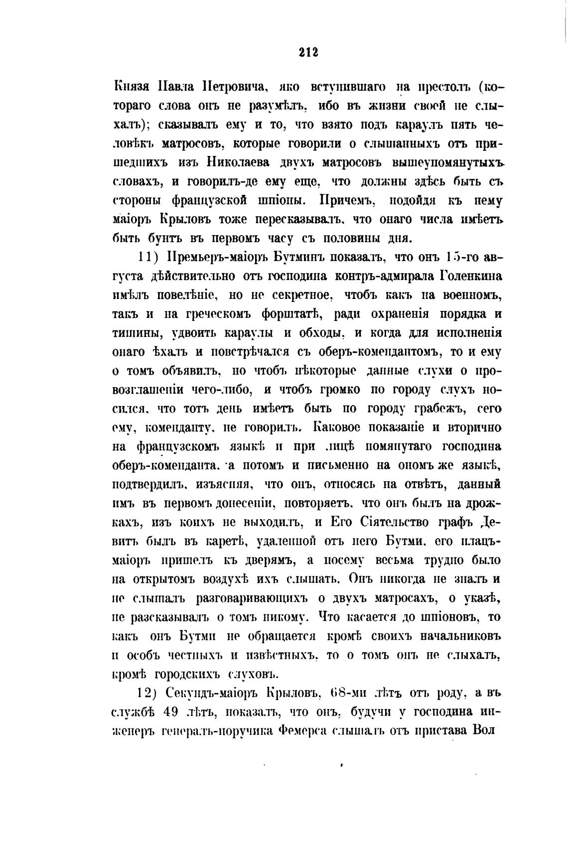 ха.ть); сказыва.лъ ему и то, что взято подъ карауль пять че-