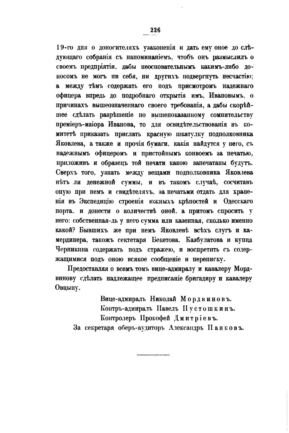 За секретаря оберт.-аудитор•ь Александръ П анковъ.