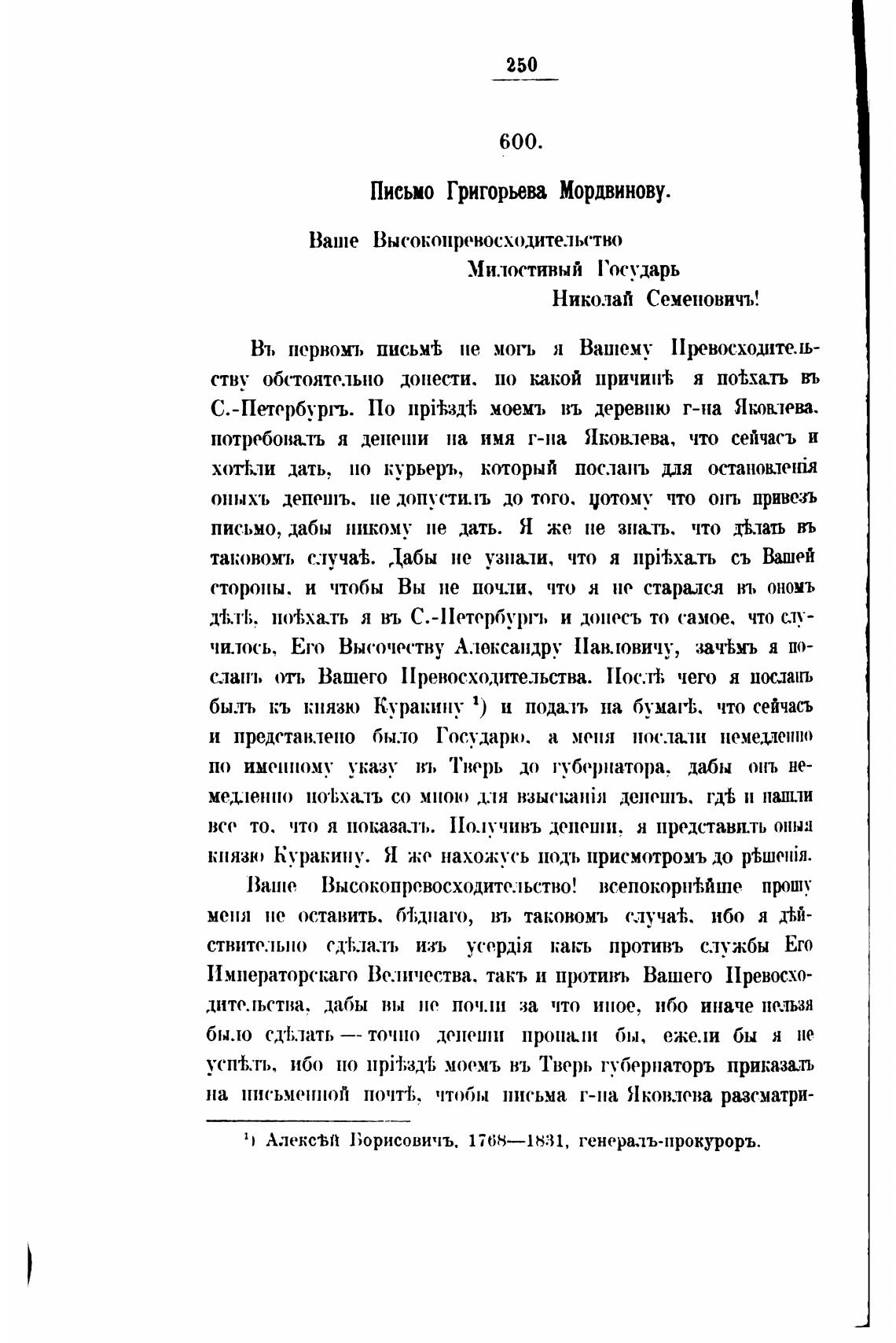 Письмо Григорьева Мордвинову.