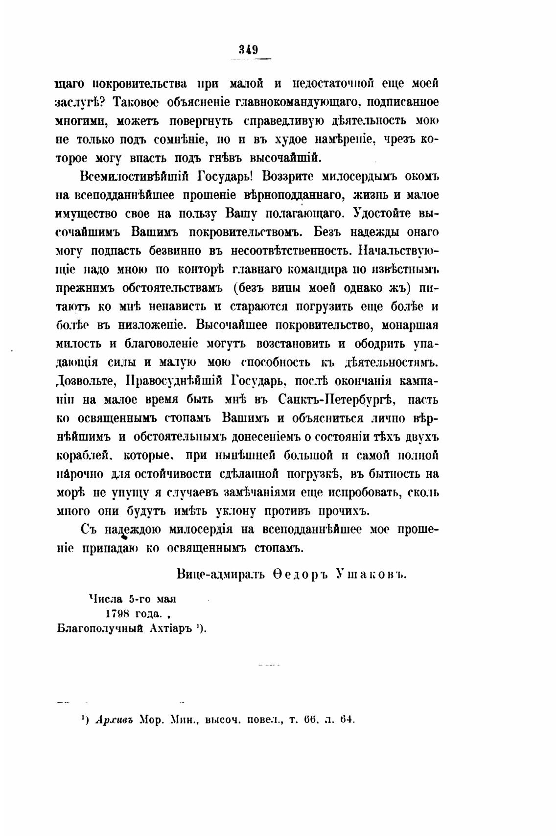 1) Архивъ Мор. Мин., высоч. повел., т. 66. л. 64.