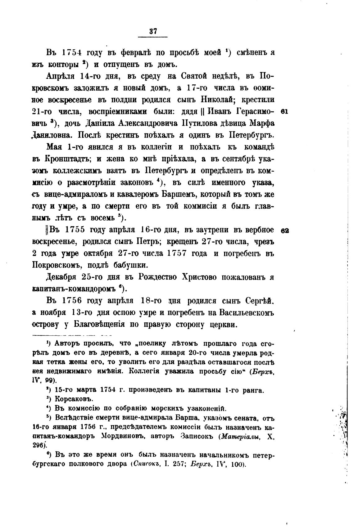 2) 15-го марта 1754 г. произведень въ капитаны 1-го ранга.