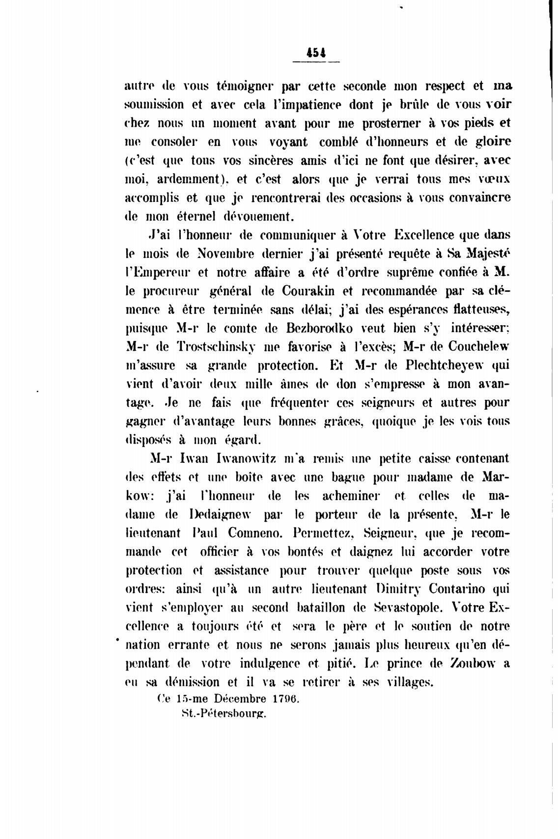 m'a.ssure sa grande protection. Et M-r de Plechtcheyew qui