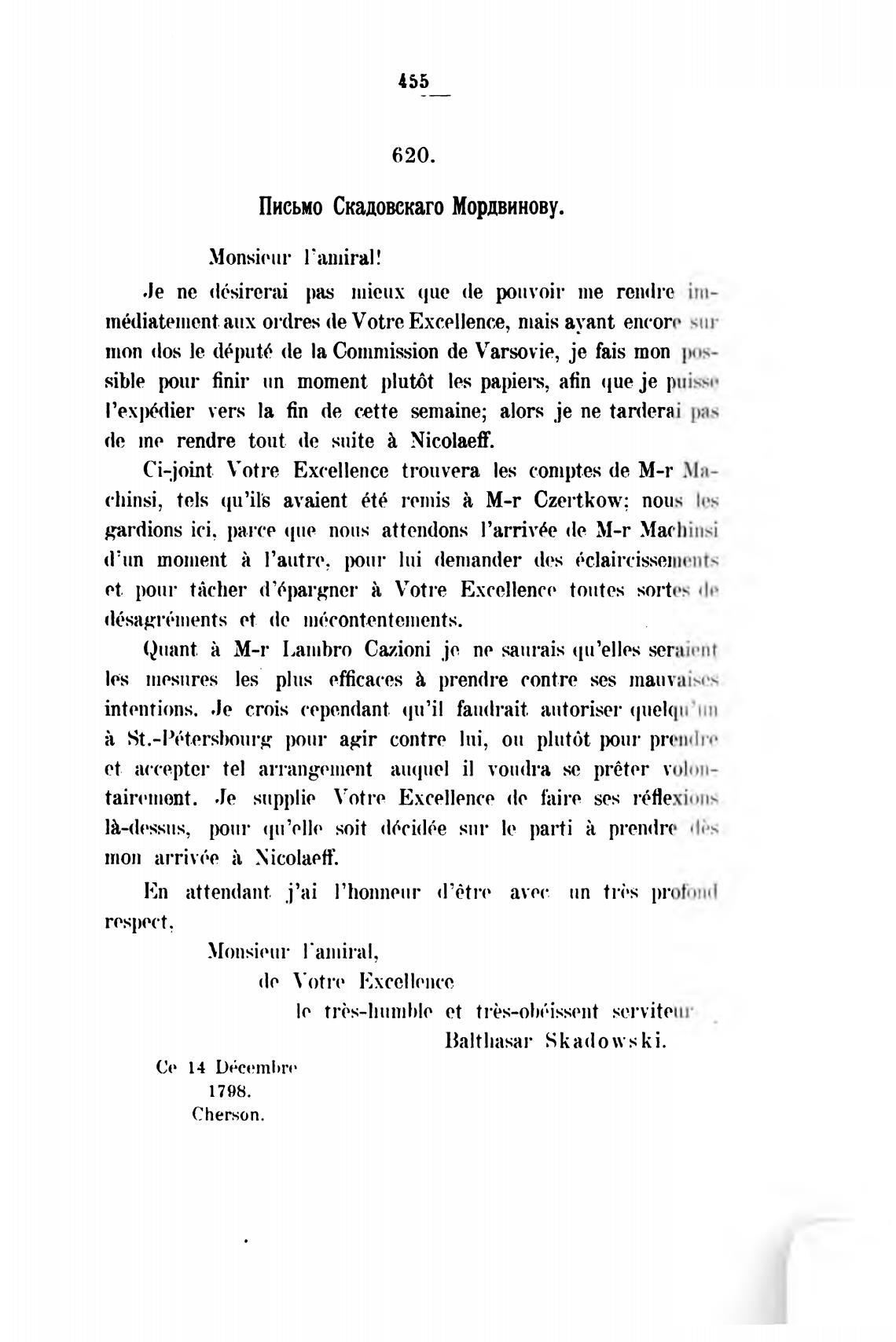 Письмо Скадовскаго Мордвинову.
