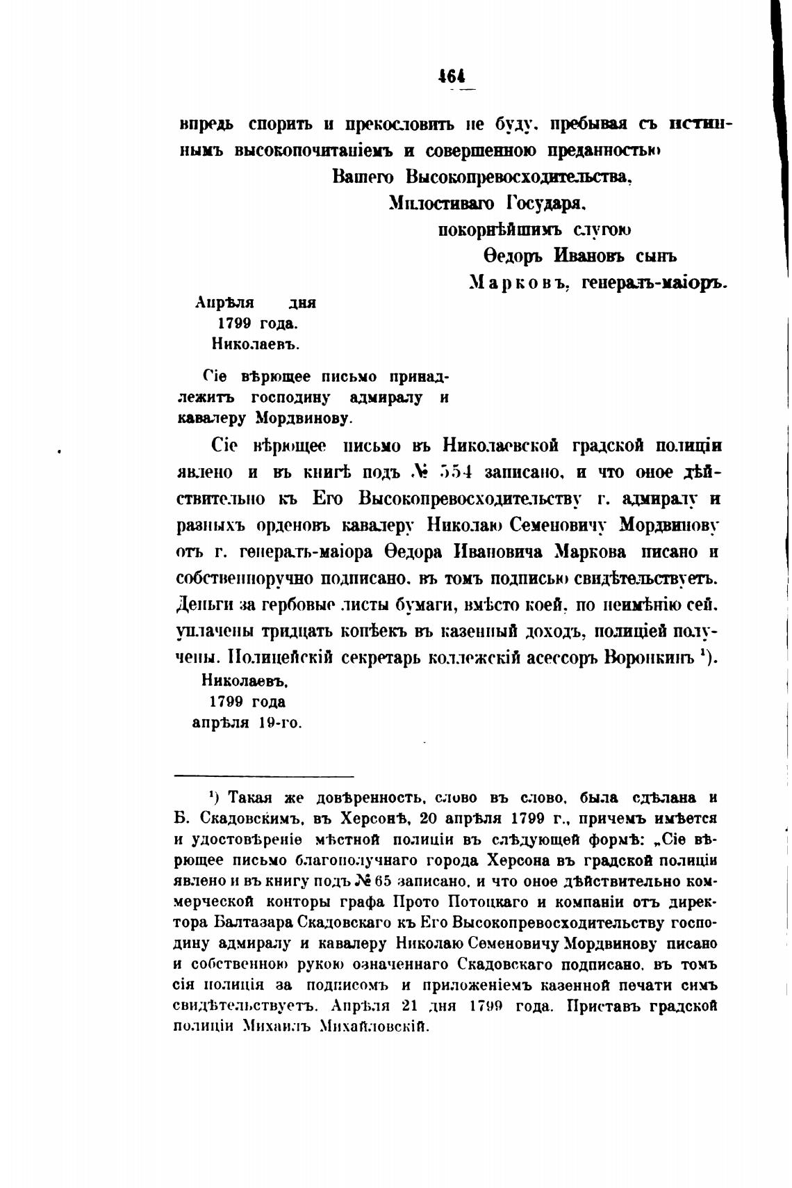 Б. Скадовскимъ. въ Херсон%, 20 апр%ля 1799 г., причемъ им%ется