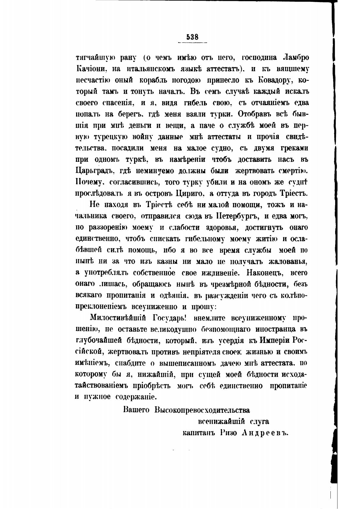 нопать на берегь. гд'ь меня взяли турки. Отобравъ всТ, быв-