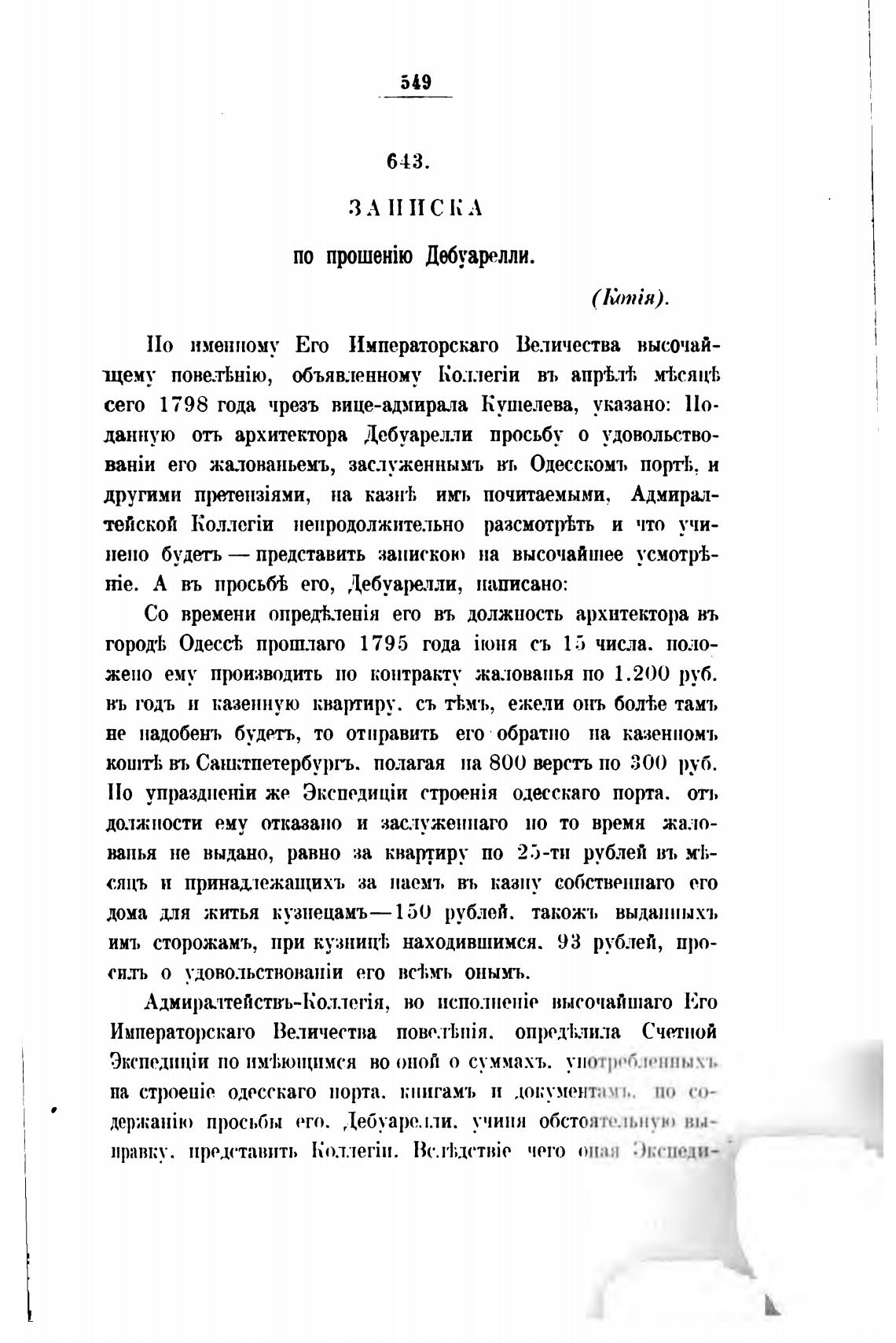 сего 1798 года чрезъ вице-адмирала Кушелева, указано: llo-