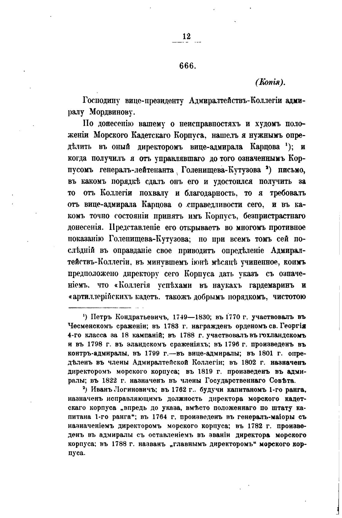дТкчить въ оный директоромъ вице-адмириа Карцова 1); и