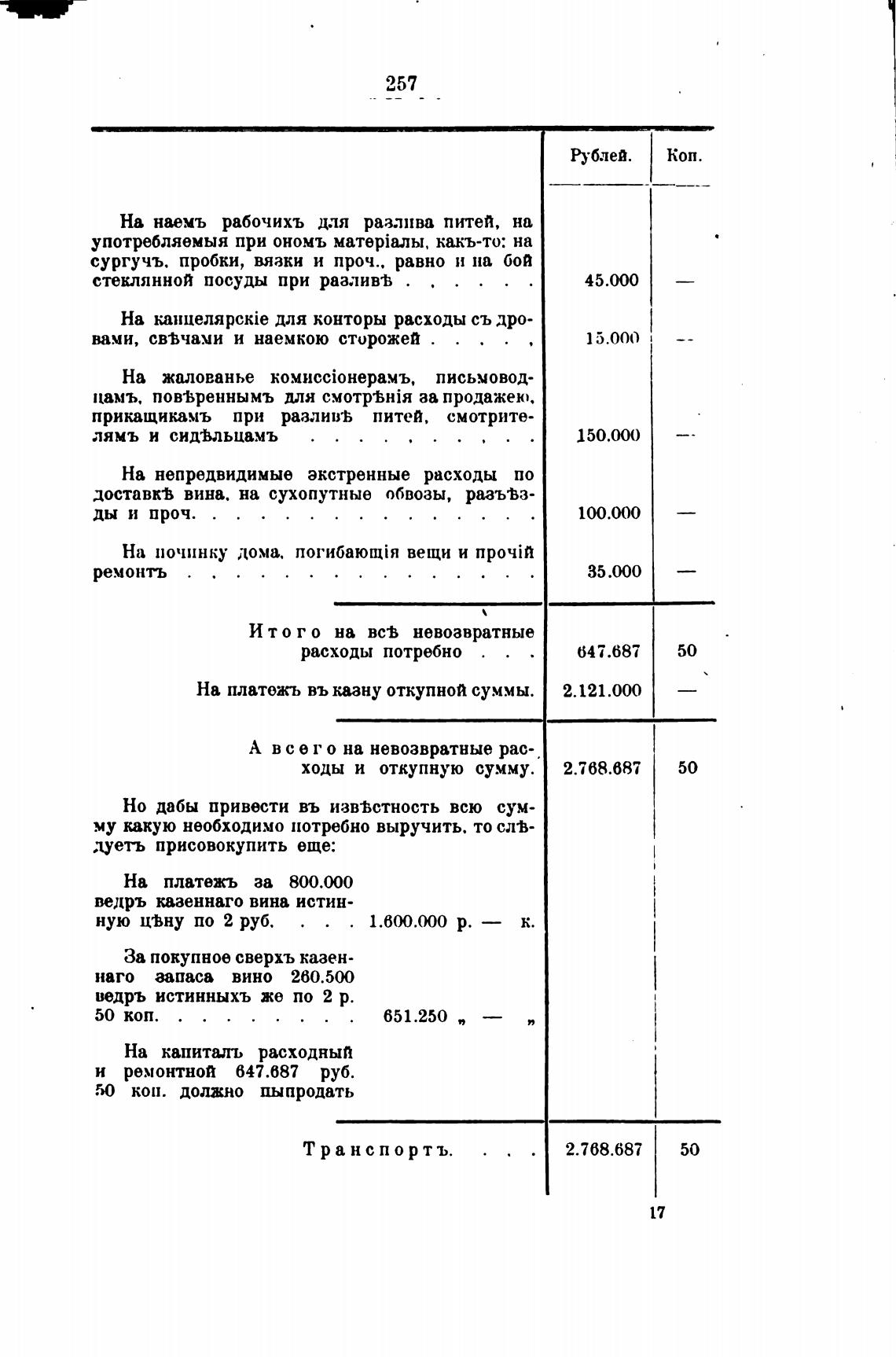 На платежъ въ казну откупной суммы.