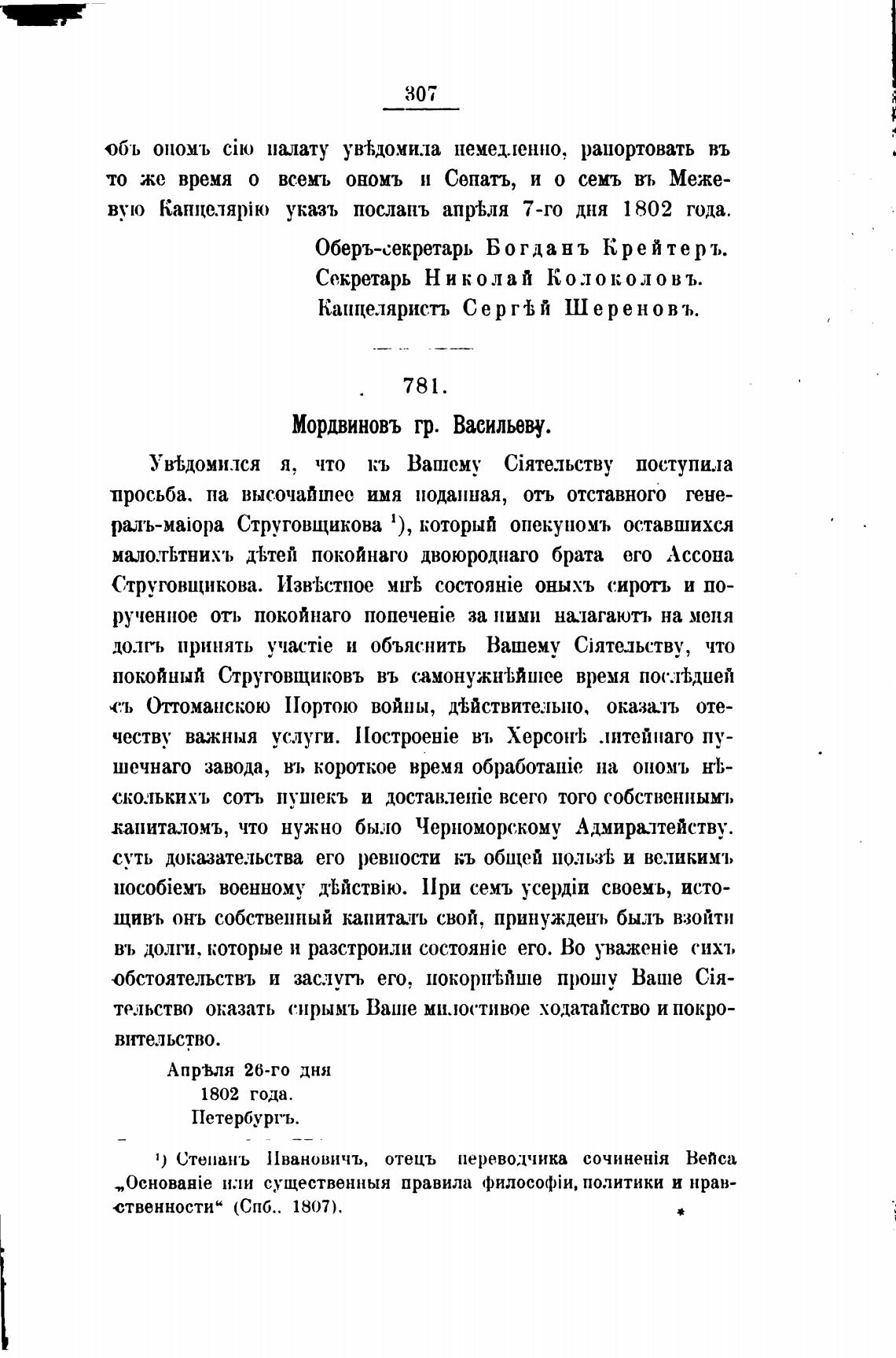 вую Канцелярјю указъ послань апр1;ля 7-го дня 1802 года.