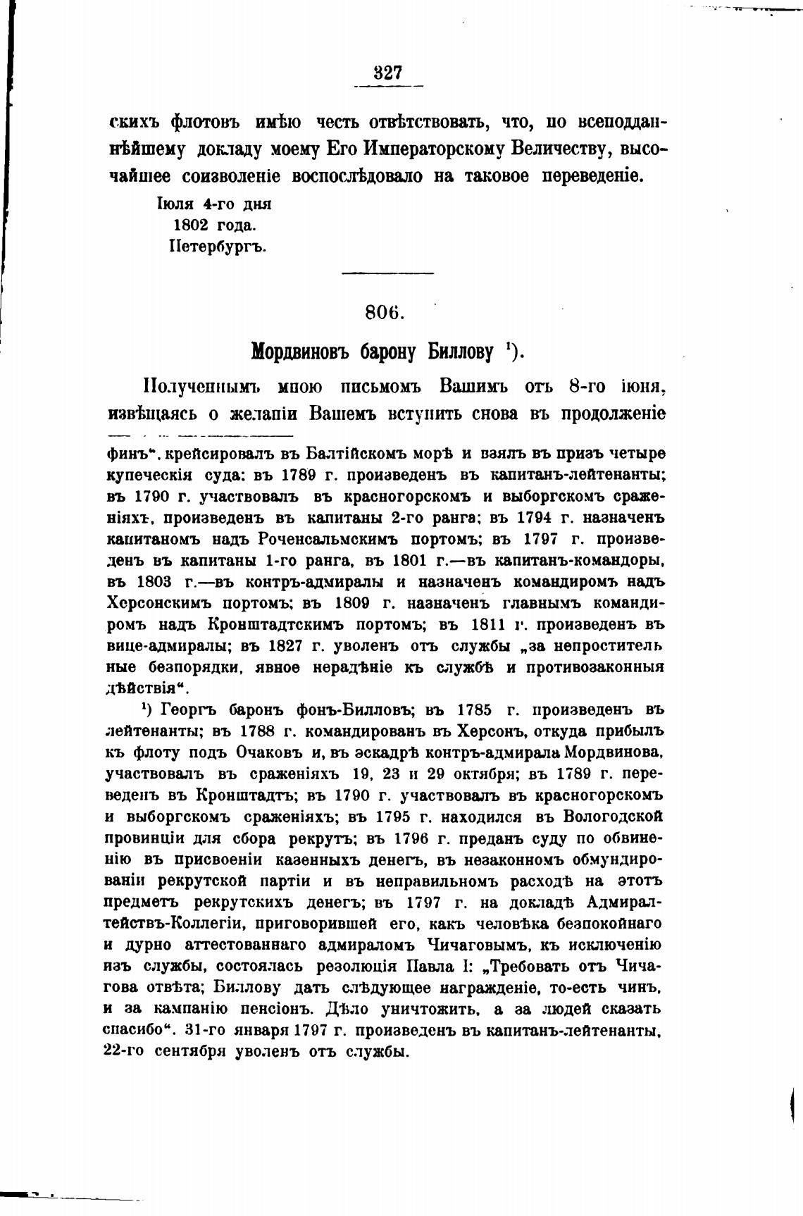 Мордвиновъ барону Биллову 1).