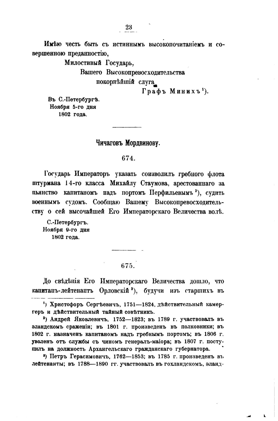1802 г. назначень капитаномъ надъ гребнымъ портомъ; въ 1806 г.