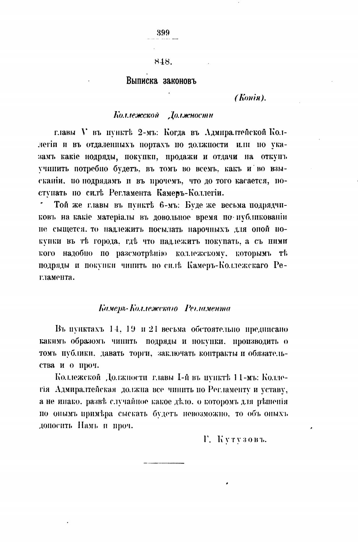 ступать по си.тЬ Регламента Камеръ-Ко.лле1Ји.