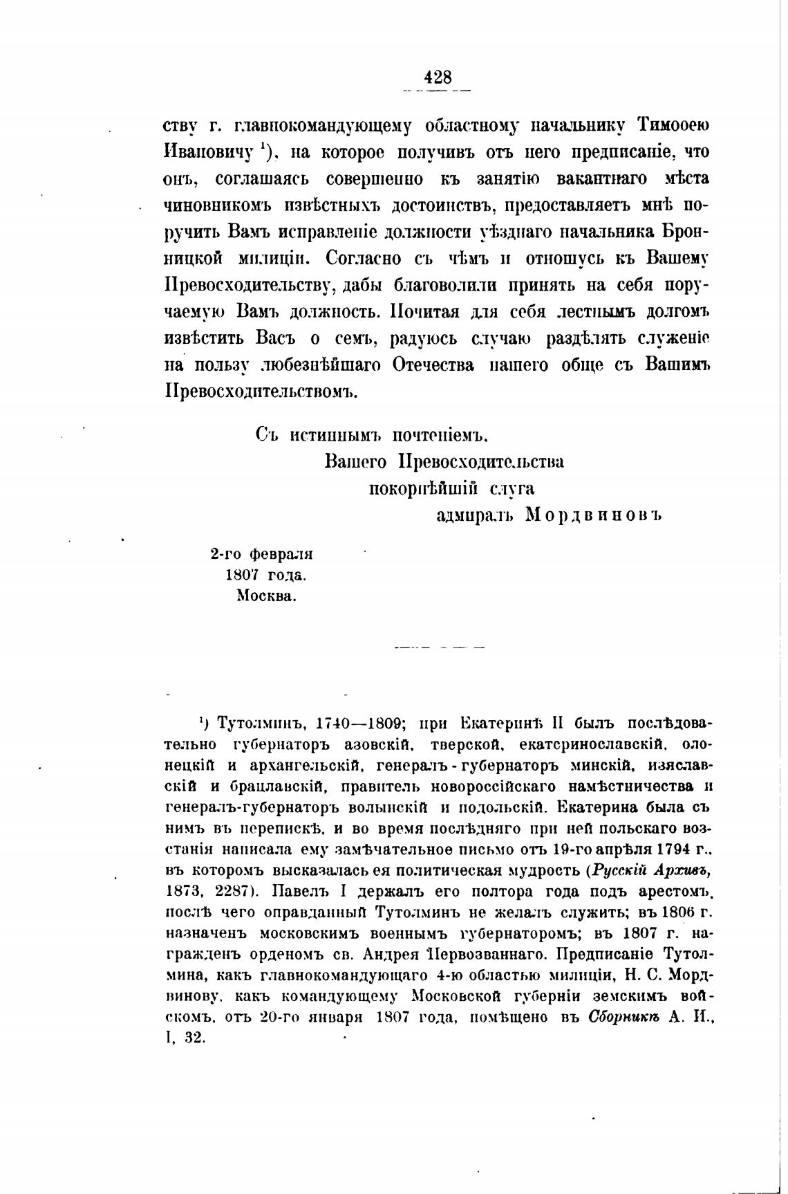 1) Тутолмннъ, 1740—1809; при Екатеринј; П быль посл•Вдова-