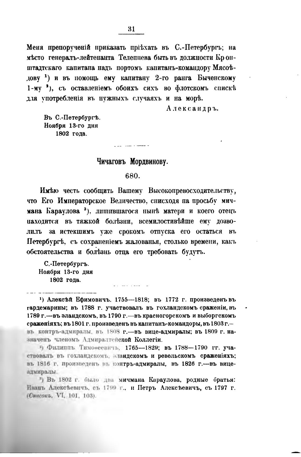 Въ 1802 г. было два мичмана Караулова, родные братья: