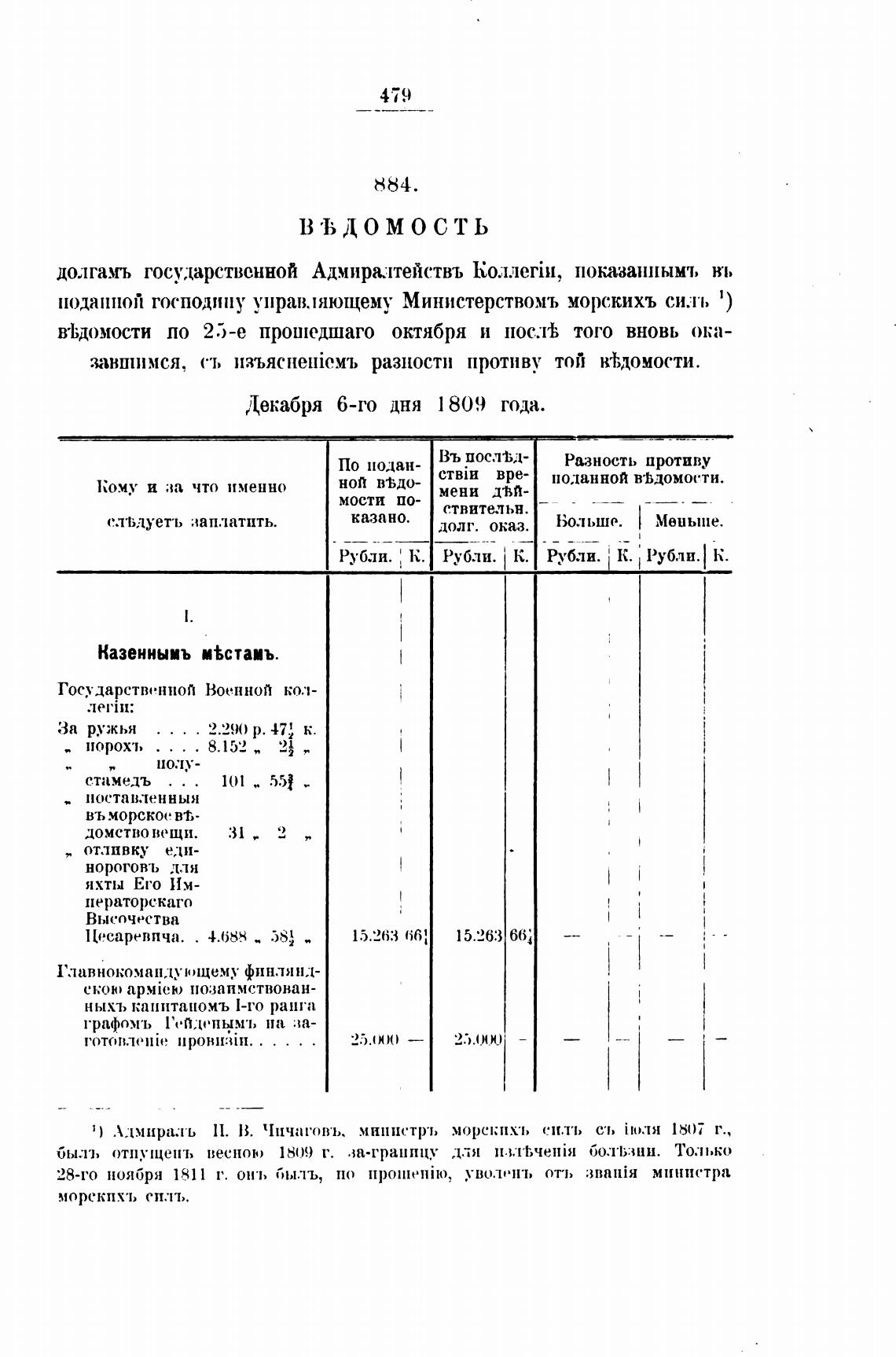 1) Алмира.л•ь П. В. Чичаговъ. мннистр•ь морским, силь ст, поля г.,