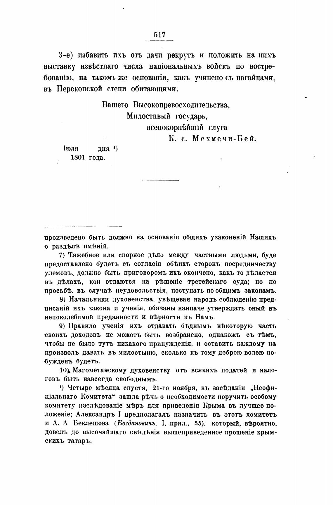 Магометанскому духовенству отъ всякихъ податей и нало-