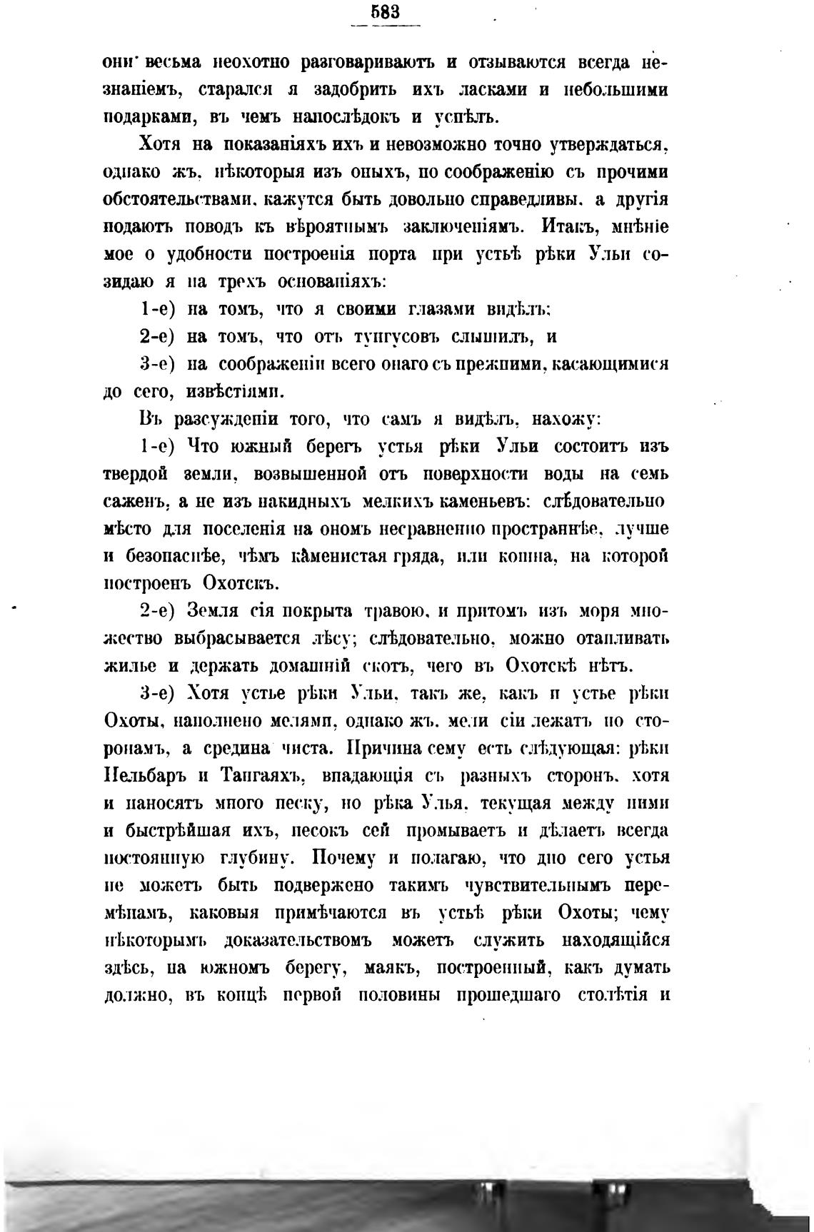 I -е) Что южный берегь устья т.к•и Ульи состоить изъ