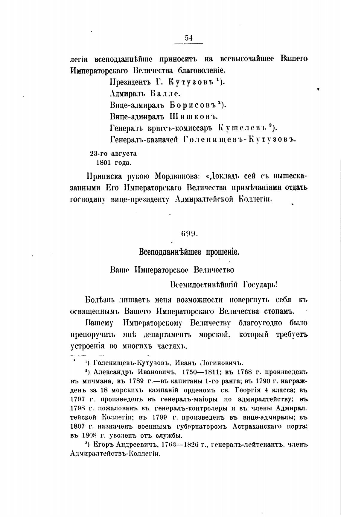 11риписка рукою Мордвинова: «Доклада. сей съ вышеска-