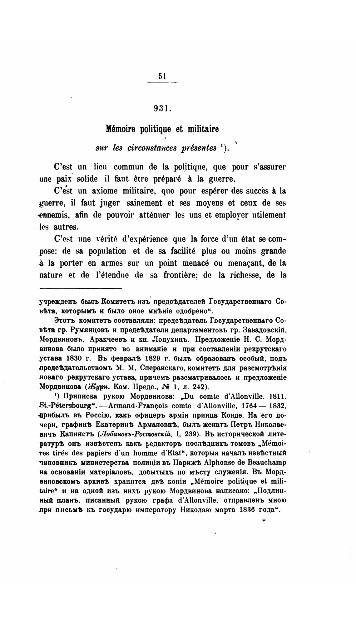 1) Приписка рукою Мордвинова: „Du comte d'Allonville. 1811.