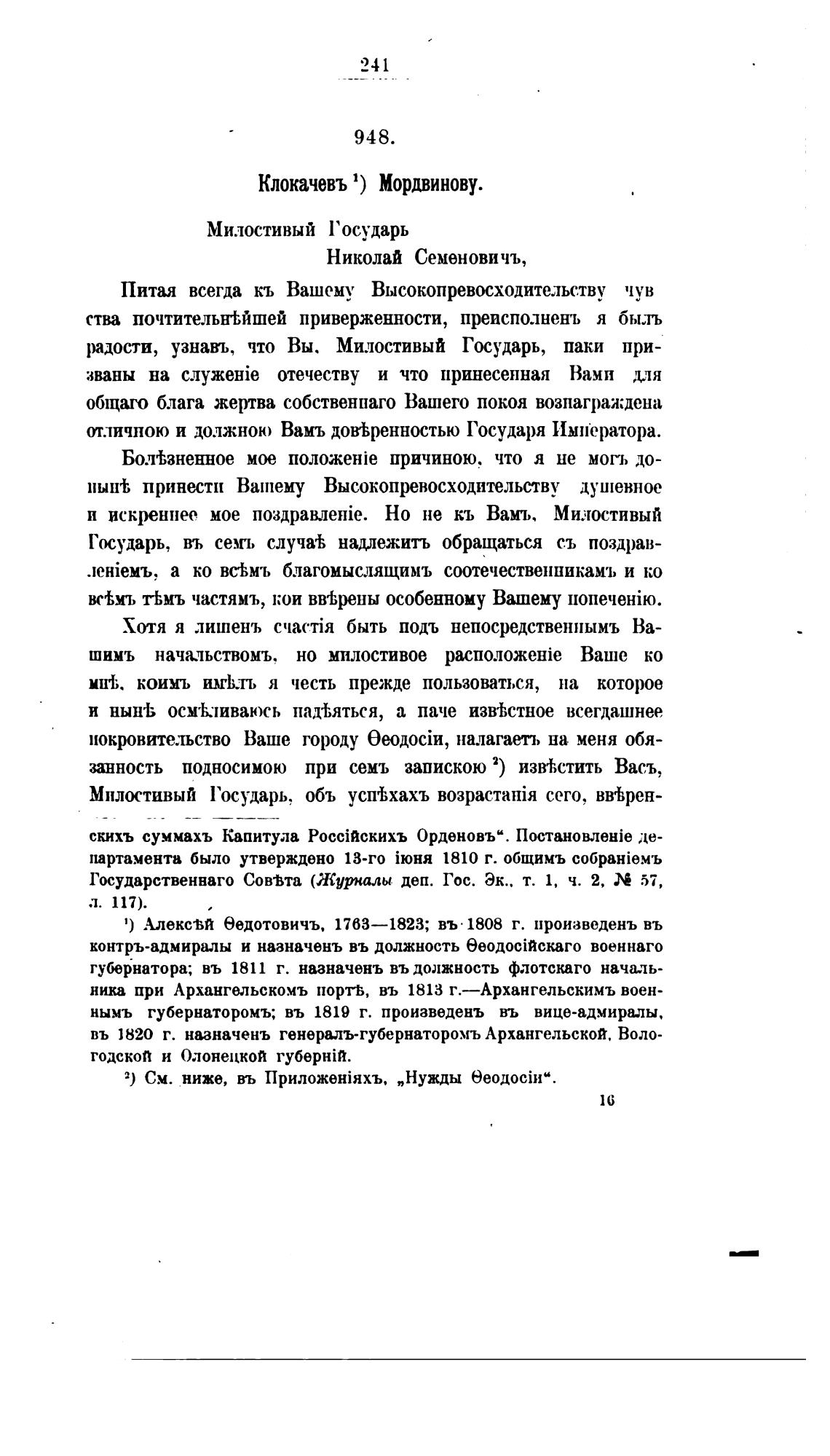 Клокачевъ 1) Мордвинову.