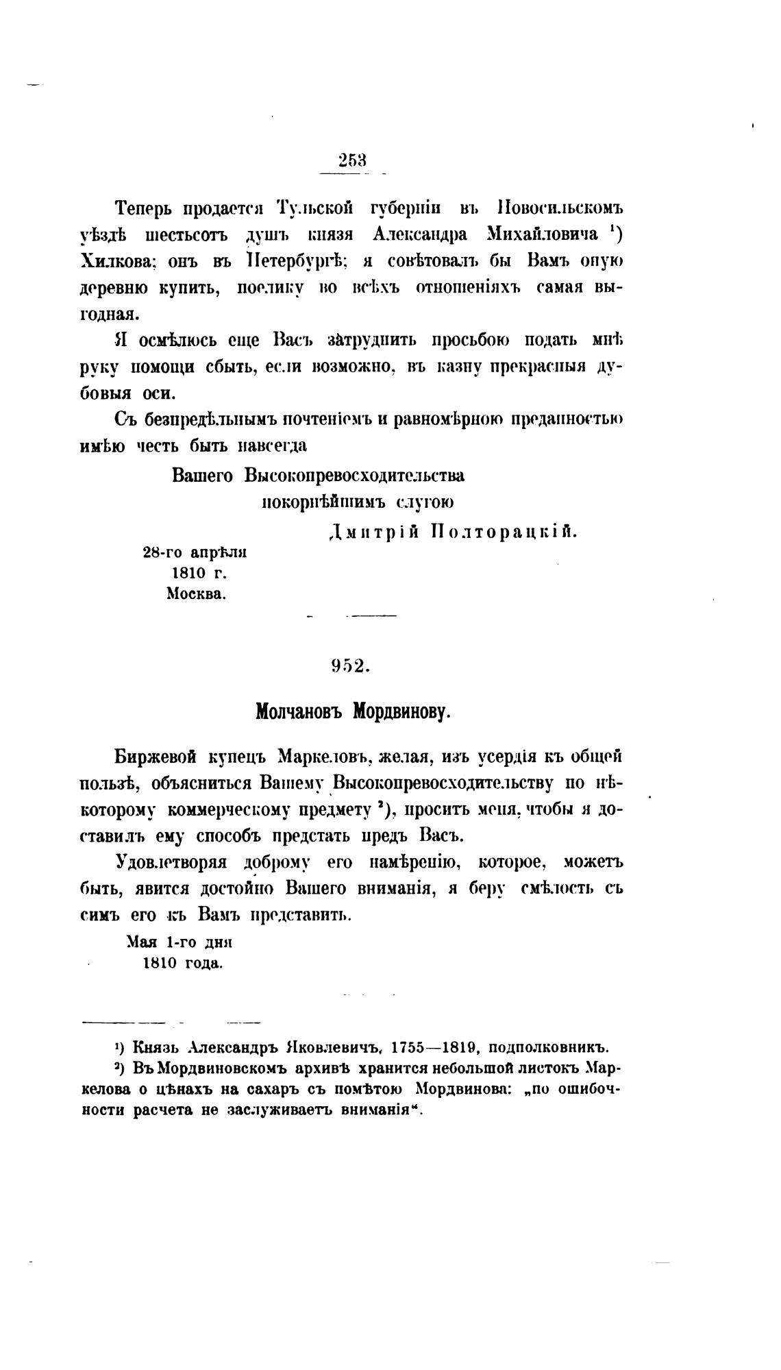 Молчановъ Мордвинову.