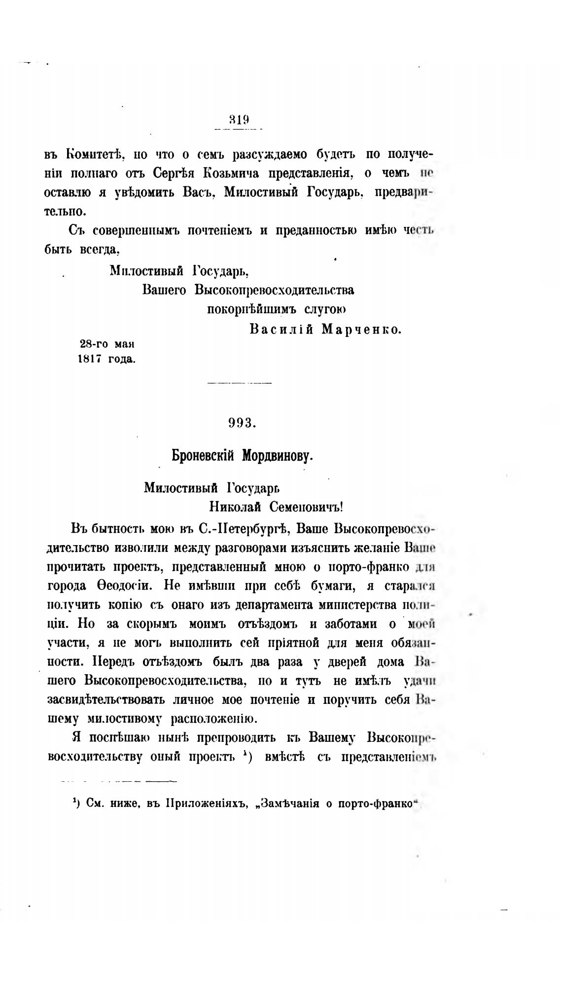 прочитать проектъ, представленный мною о порто-франко
