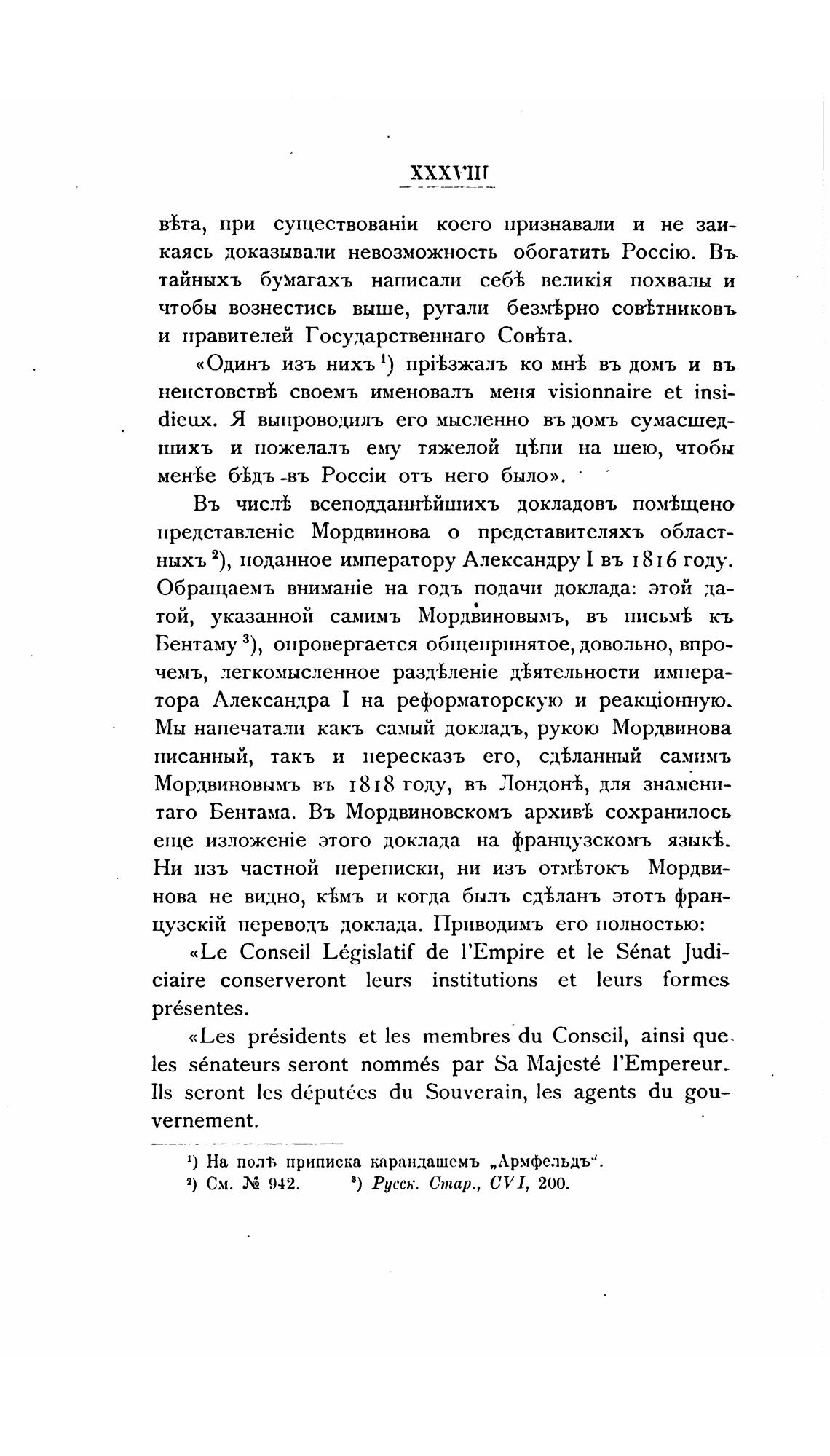 Мы напечатали какъ самый докладъ, рукою Мордвинова