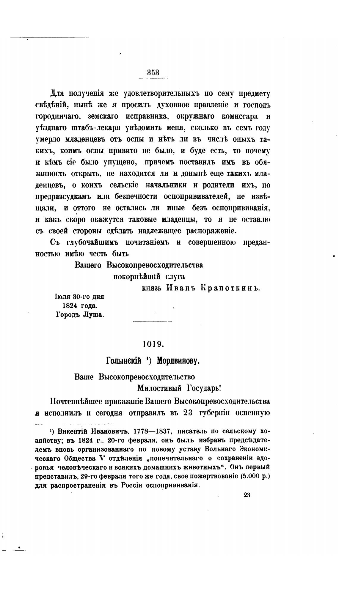 а исполнилъ и сегодня отправилъ въ 23 гљрбертйи оспенную