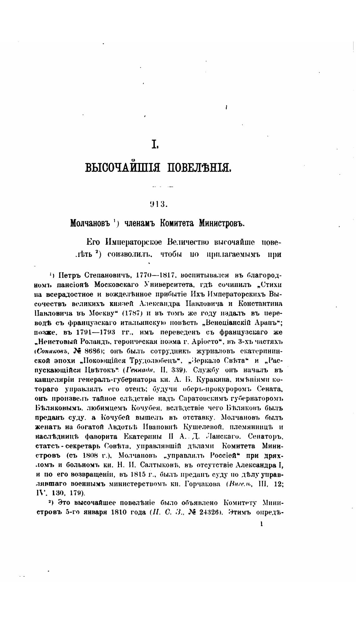Молчановъ 1) членамъ Комитета Министровъ.