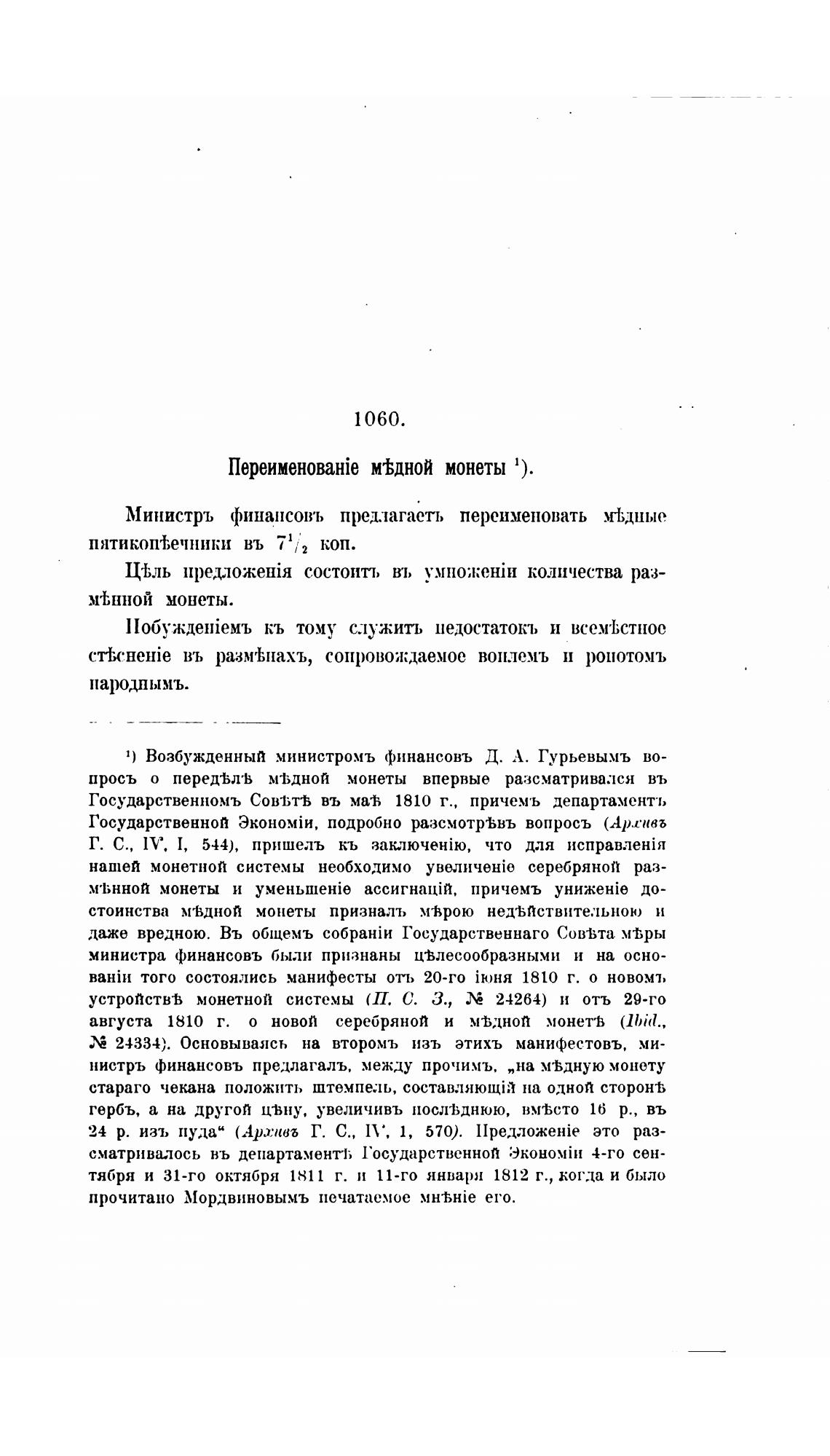 1) Возбужденный министромъ финансовъ Д. А. Гурьевымъ во-