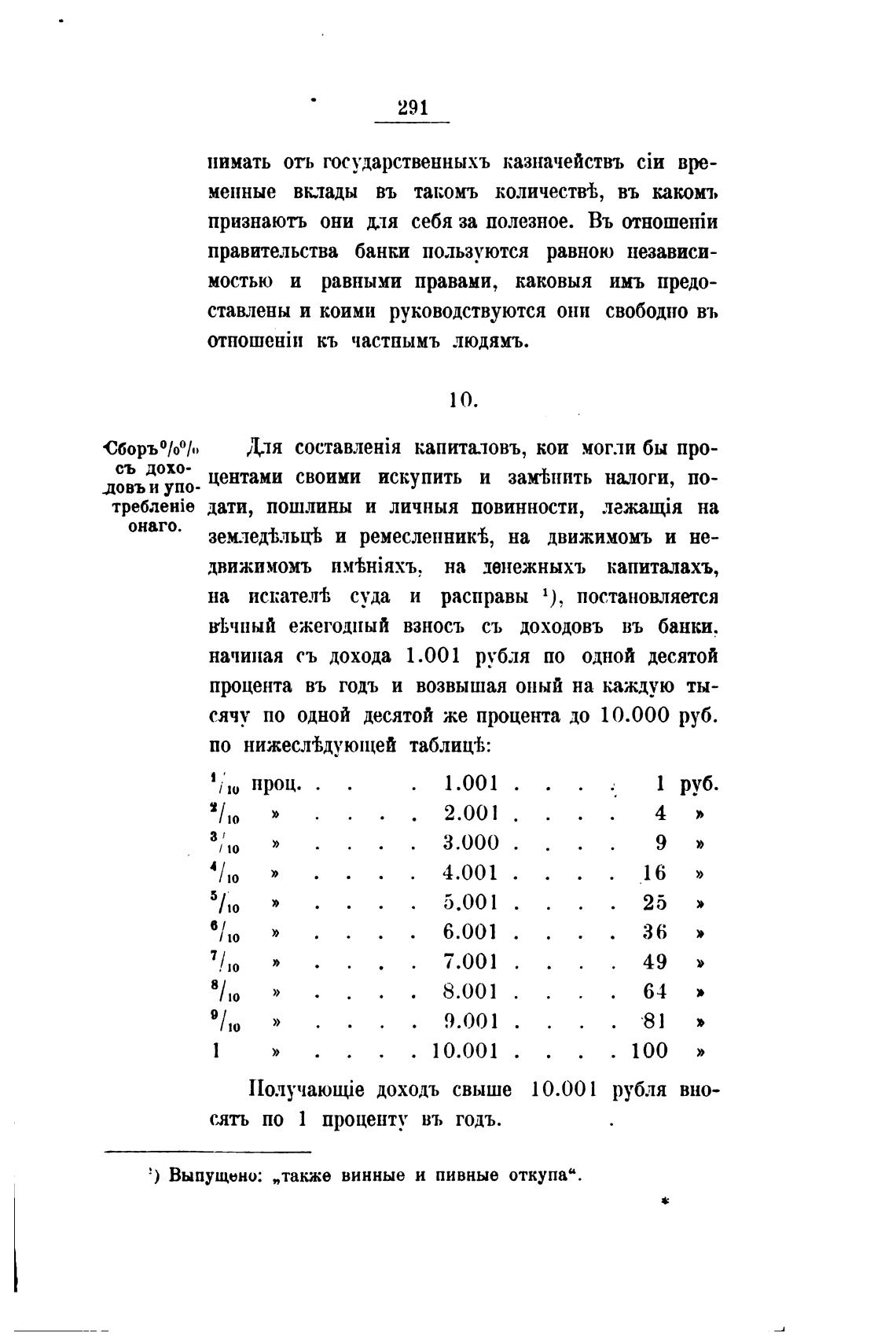 ВЬчный ежегодный взносъ съ доходовъ въ банки.
