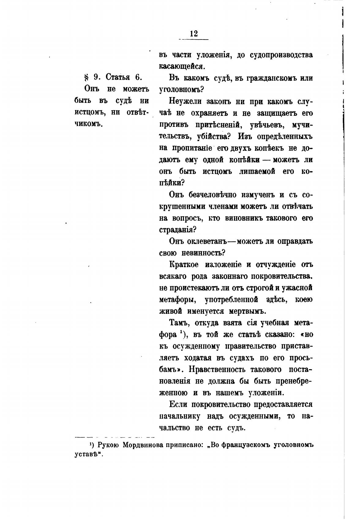 1) Рукою Мордвинова приписано: „Во французскомъ уголовномъ