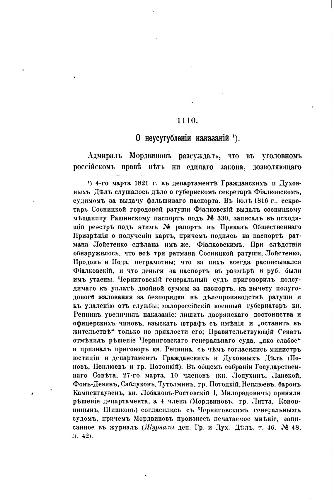 Адмираль Мордвиновъ разсуа;да.ть, что въ уголовномъ