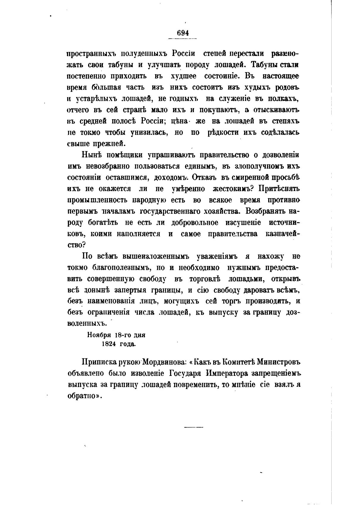 Приписка рукою Мордвинова: « Какъ въ Комитетћ Министровъ