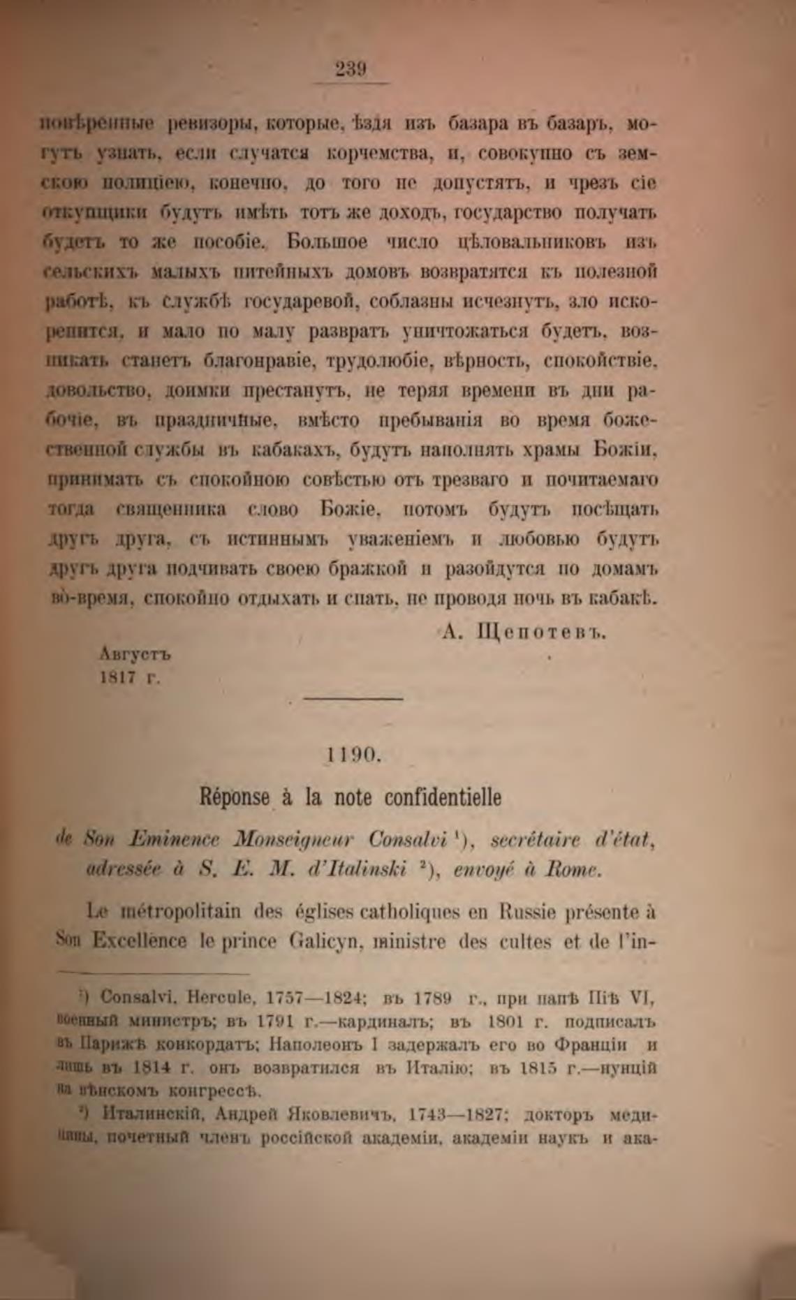 adress&e д S. Е. М. d'Italinski 2), епеоуе; п Поте,