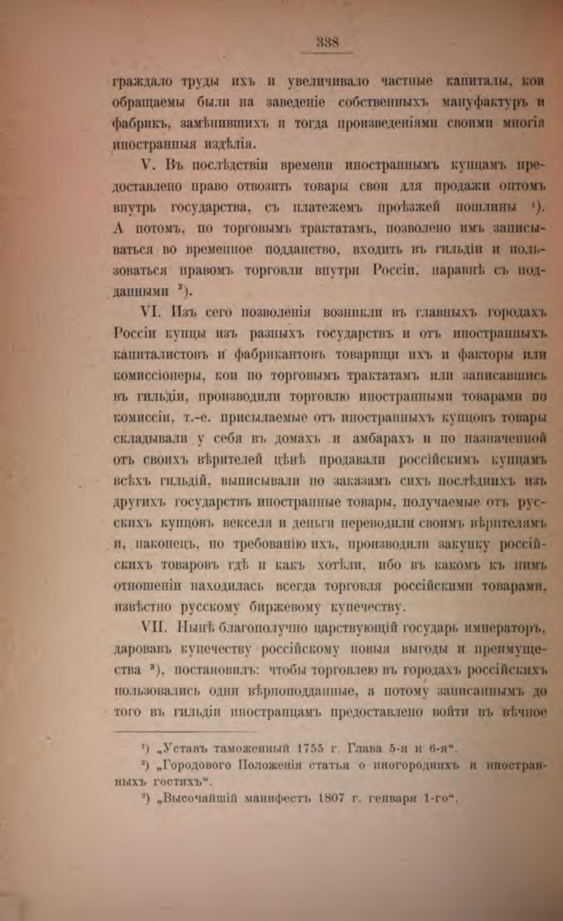 V. Въ времени иностраннымъ купцам•ь пре-