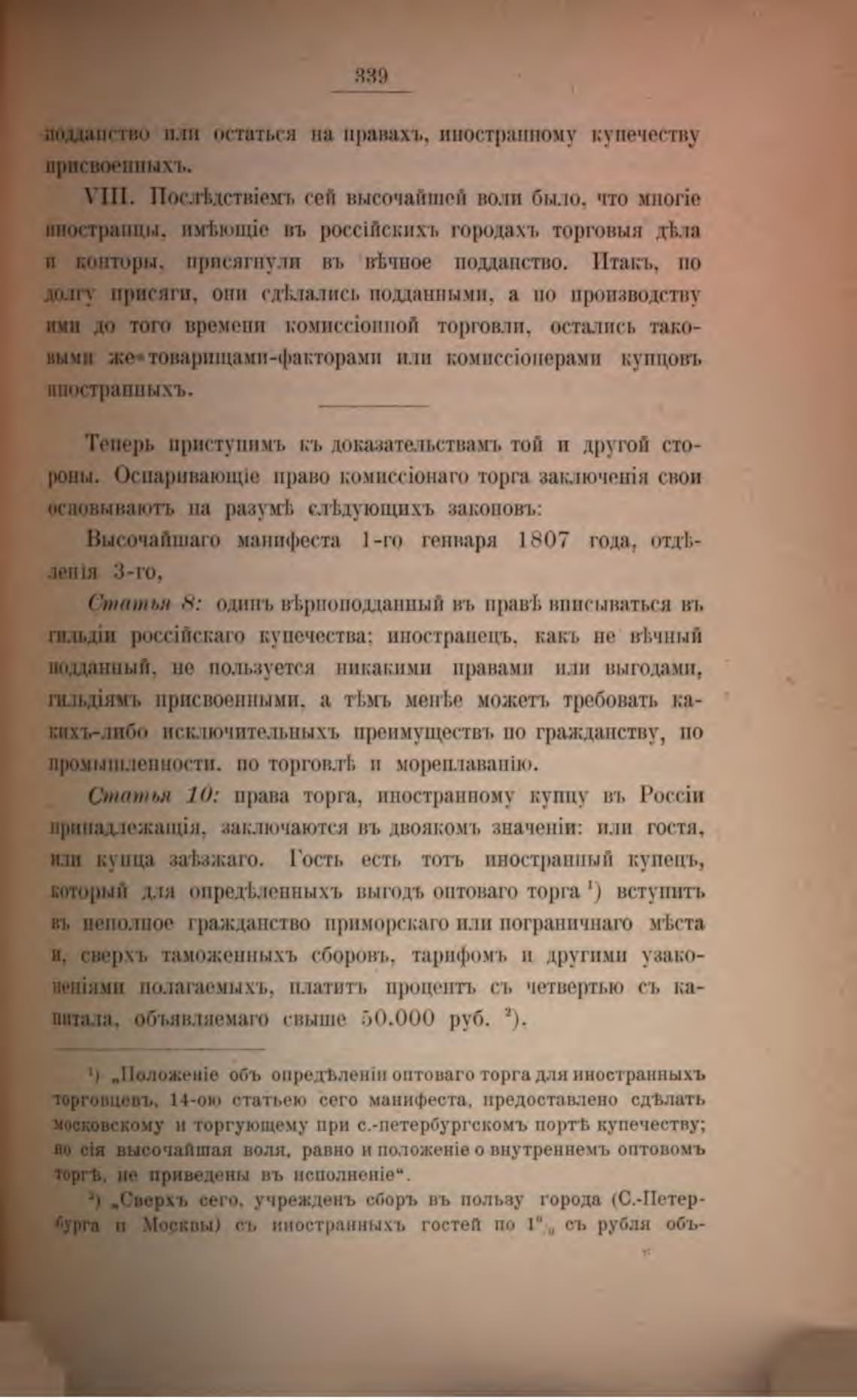 подданство пли остаться на правахъ, иностранному купечеству