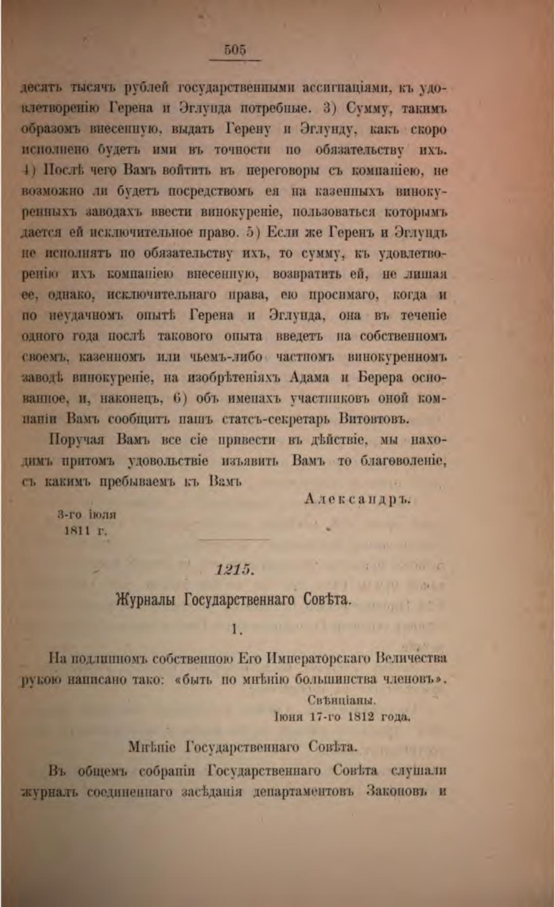 На подлипномъ собственною Его Императорскагт» Величества