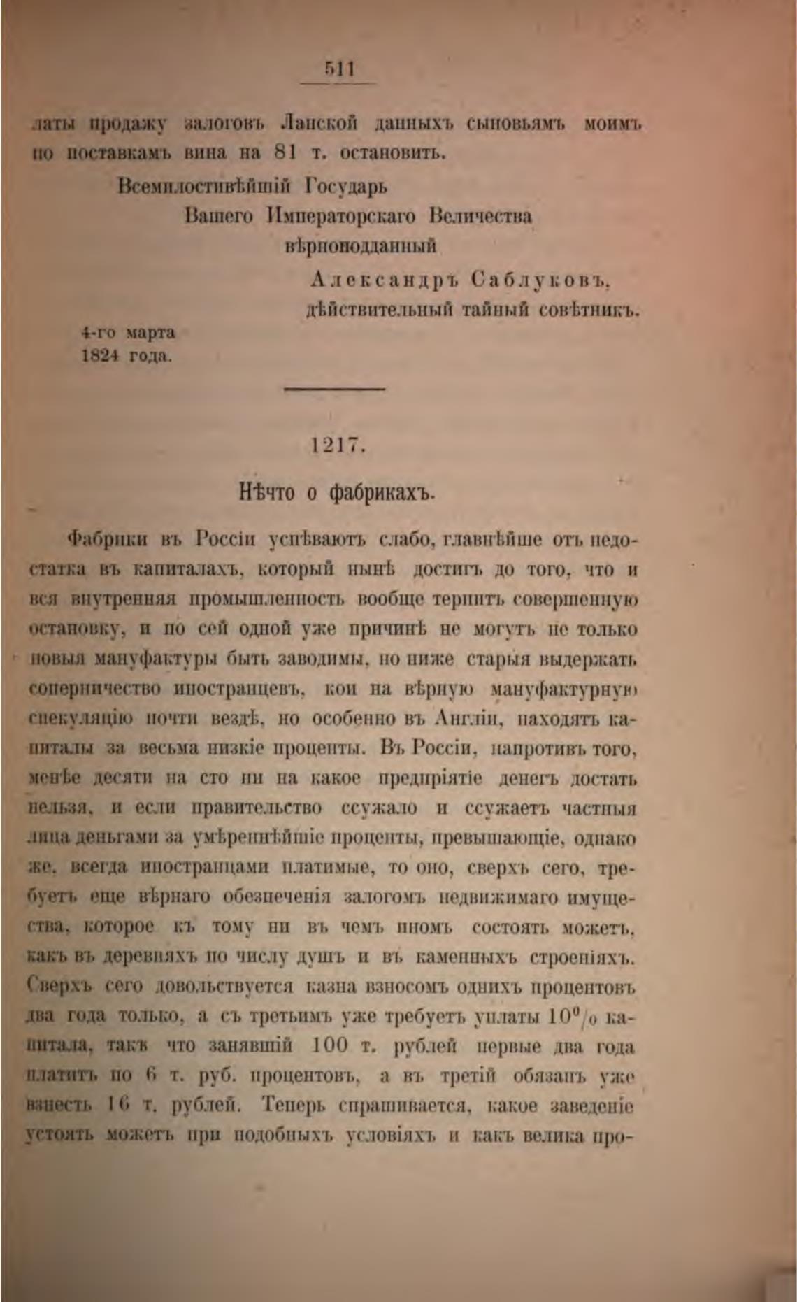 Сверхъ сего довольствуется казна взносомъ однихъ процентовъ