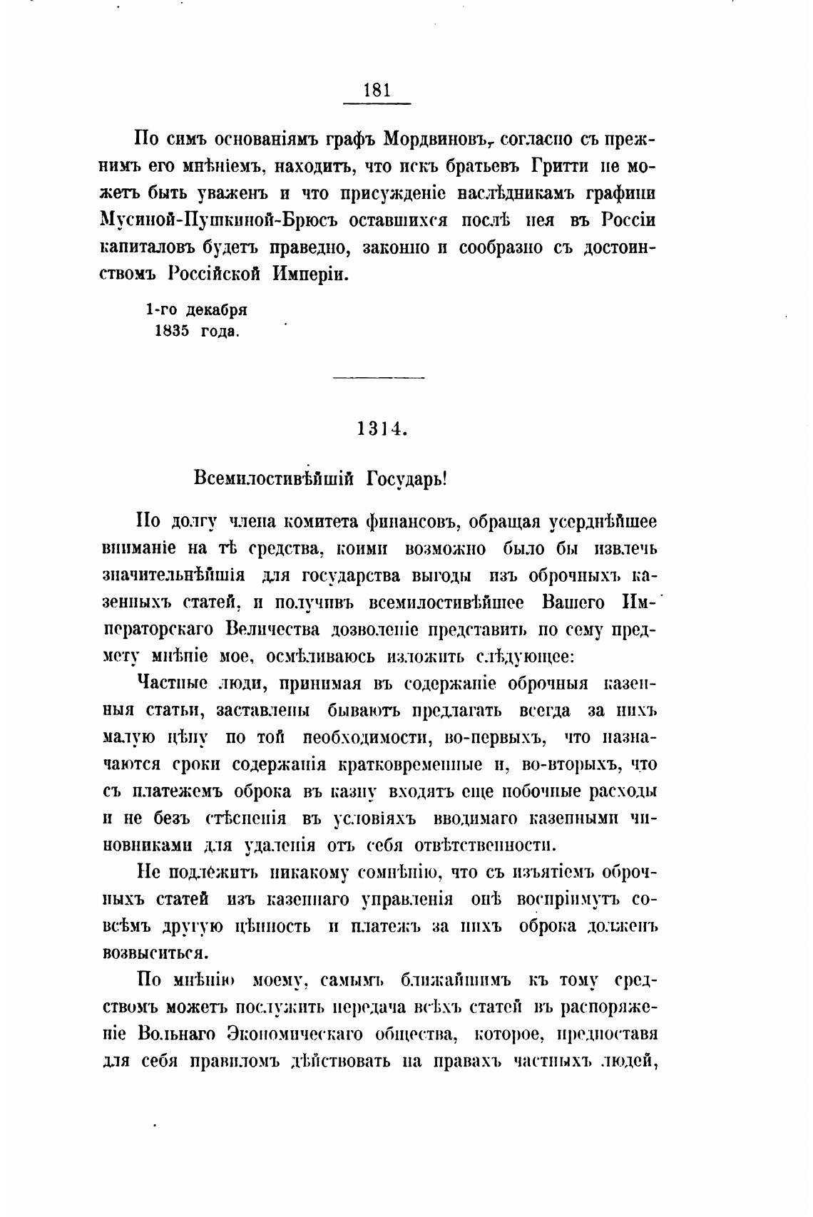 По симъ графъ Мордвиновът согласно съ преж-