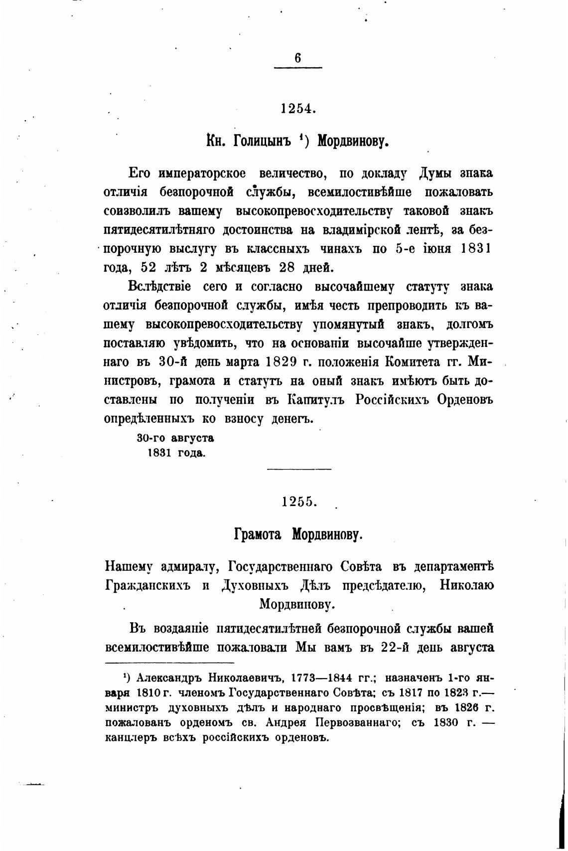 Кн. Голицынъ 1) Мордвинову.