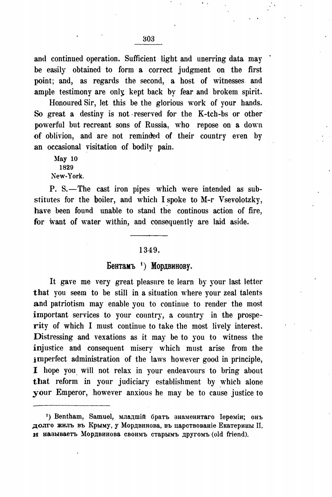 Бентамъ 1) Мордвинову.