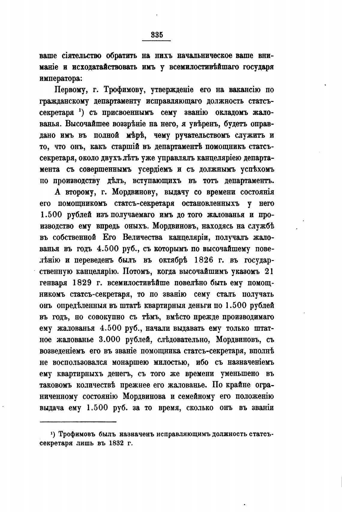 1) Трофимовъ быль назначень исправляющимъ должность статсъ-