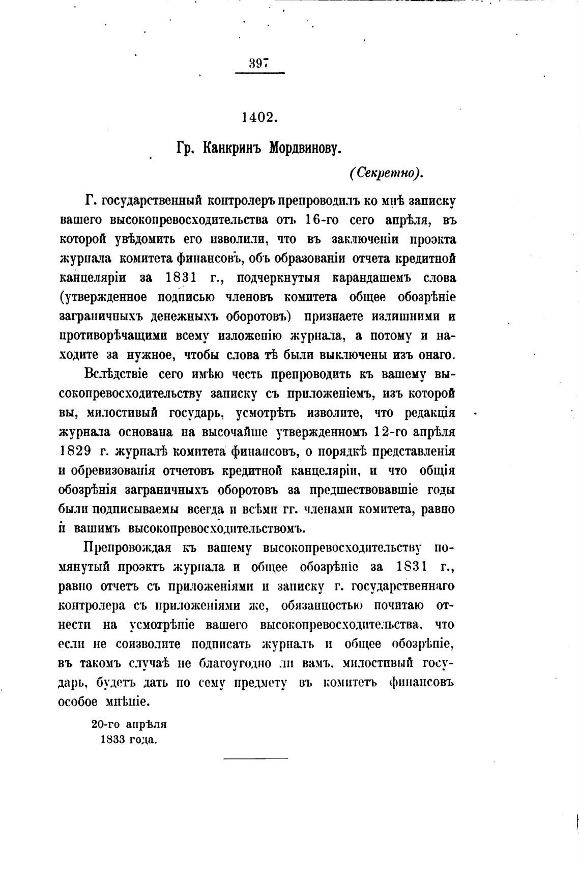 Гр. Канкринъ Мордвинову.