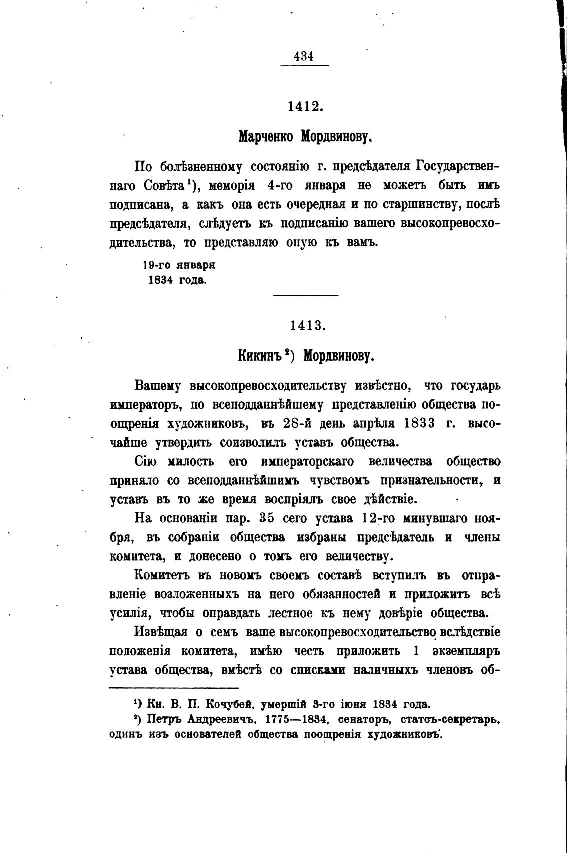 1) Кн. В. П. Кочубей, YMepmiR 3-го 1834 года.