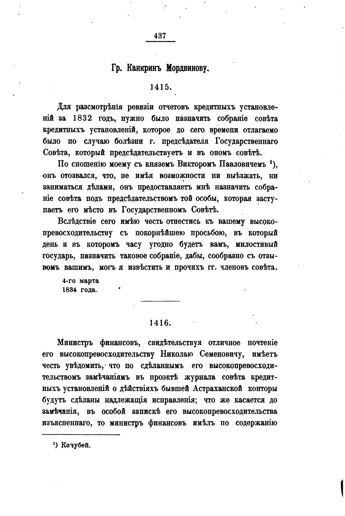 Гр. Канкринъ Мордвинову.