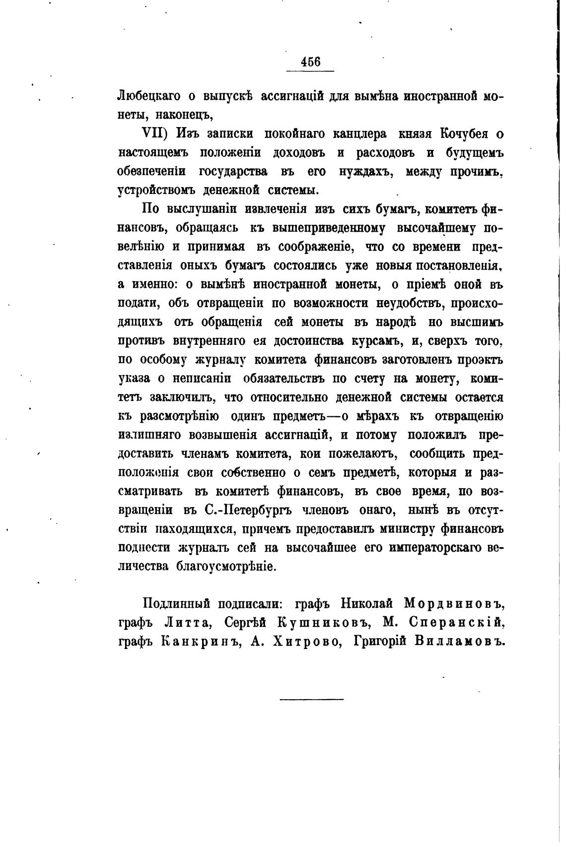 Подлинный подписали: графъ Николай Мордвинов ъ,
