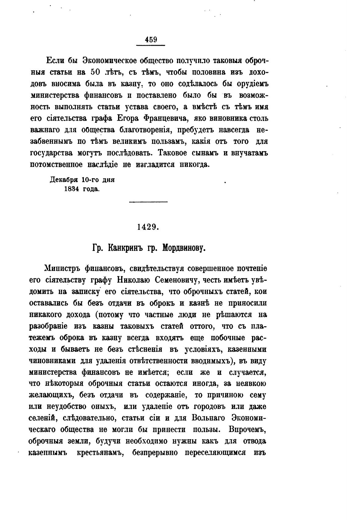 Гр. Канкринъ гр. Мордвинову.