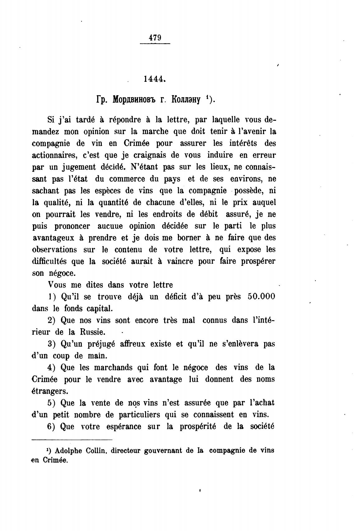 Гр. Мордвиновъ г. Коллану 1).