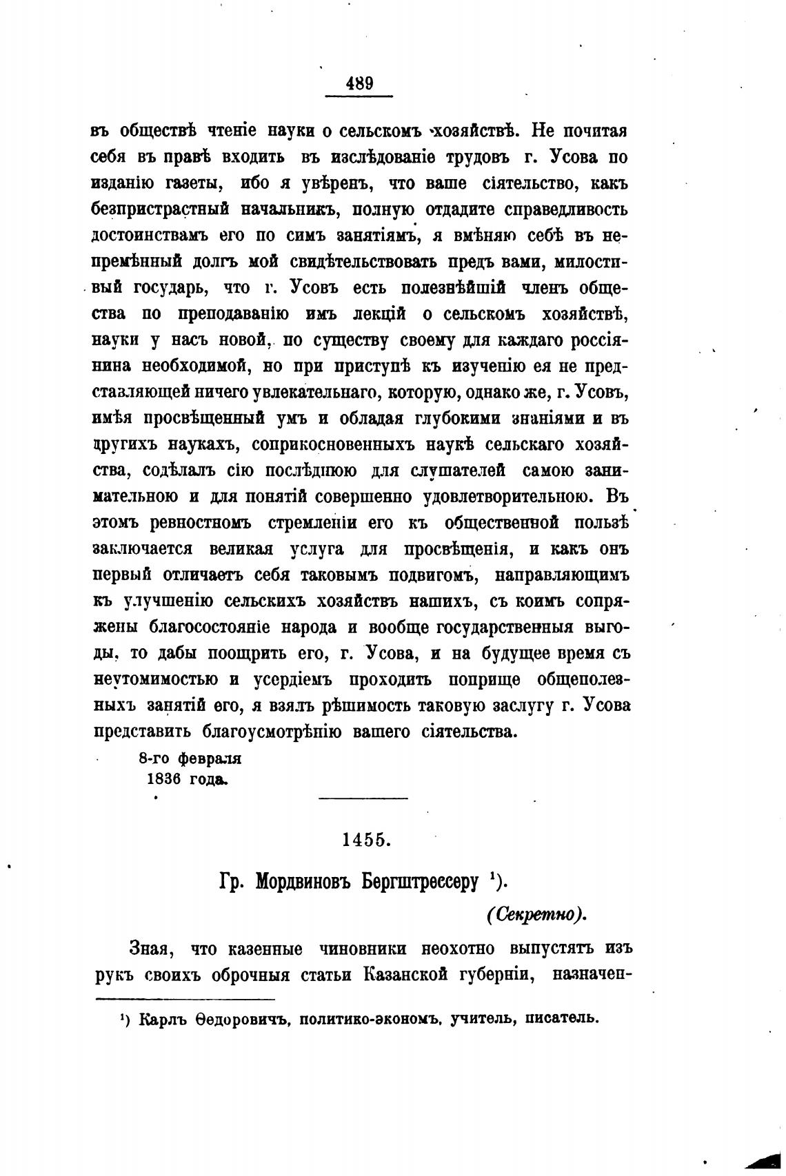 Гр. Мордвиновъ Бергштрессеру 1).